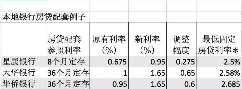 例如星展银行前天开始生效的房贷利率,平均调高0.3个百分点,其中八个月定存利率房贷配套参照的利率,从0.675%升至0.95%。