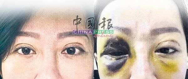 她说,右眼出现肿胀和瘀青后,新年都不敢出门,并向雇主申请无薪假至今。