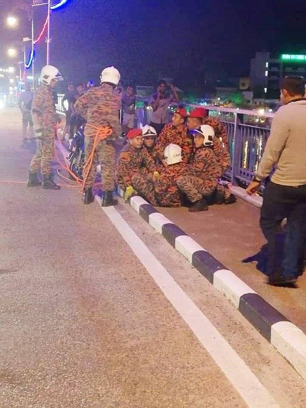 为数9人的消拯人员抵达麻桥现场时,该名巫裔青年坐在围栏外,形势危险。