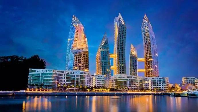 建筑外观如波浪般起伏,包含6栋24层至41层的高层以及11栋低层公寓,合计1129套单元。精心编排的结构曲线轮廓成为圣淘沙岛滨水区、毗邻的高尔夫球场和花柏山的前景。相邻建筑楼板都有所偏移,消除了直线感并在每层创造了不同的画面。个性得到了鼓励,甚至连住宅周边也会有独特的体验。