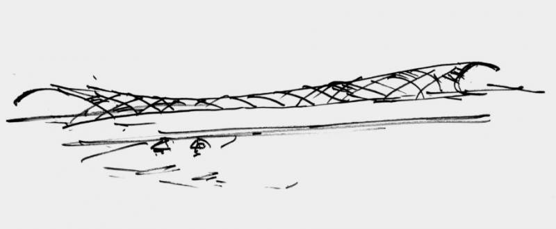 伊东丰雄将活动和流动的概念,融入空间与钢筋水泥结构里。采用了波浪形主题符号,以波浪形态覆蓋整个建筑。沿着港湾的白色流线型摩登建筑,既像涌动的海浪,又像飘荡的风帆。从建筑的各个角度都可自成一景。