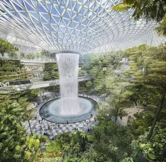 “星耀樟宜”坐落于新加坡樟宜机场的核心位置,占地总面积达14000平方米,地上和地下各建有五层楼。汇聚了独一无二的游乐胜地、购物休闲、住宿餐饮、花园景观和航空设施,并将大自然带入室内,融合清新绿植与都市活力,成就新加坡规模最大的室内花园。穹形玻璃屋顶和充满现代感的钢材外观设计让人眼前一亮!