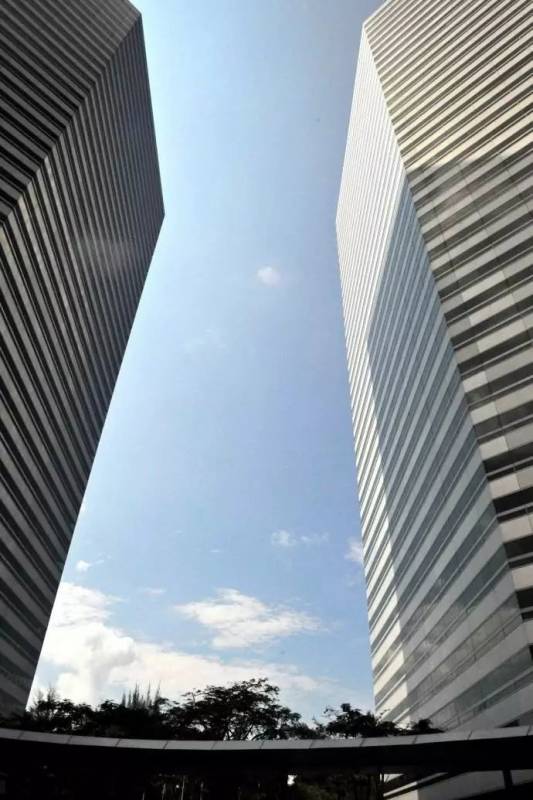 当你看到这一片二维的玻璃墙直冲云霄,一瞬间大概会以为自己穿越到其他维度了。 这是新加坡的新门广场,外号“纸片楼”。设计原理是,尖角角度约为40度,而大楼的横切面呈梯形。所以从某个角度看,只是一面墙,没有厚度。