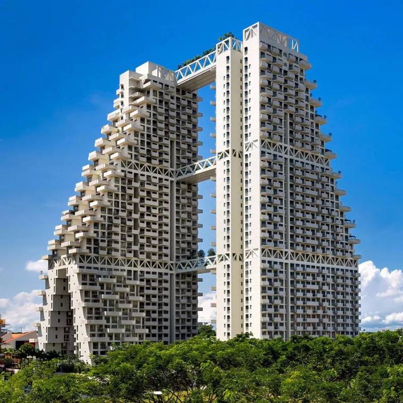 Sky Habitat作为萨夫迪栖息地系列的第二件作品,2016年建成于新加坡,其延续了萨夫迪对于栖息地的理念,因地制宜的设计相较于Habitat 67更为成熟。