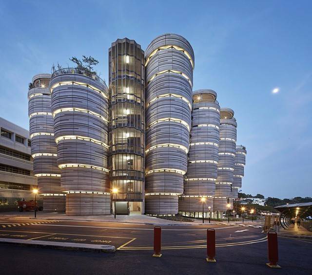 南洋理工大学学习中心这是一个整体建筑群设计,灵感来源于母体的孕育,其目的是通过拉近彼此的距离,让所有的房间连结起来,从而减少空间的角落,形成和谐统一的整体。