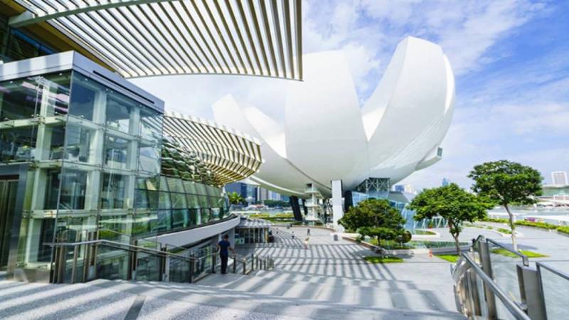 世界上首个艺术科学相结合的博物馆,外形犹如盛开的莲花,在4000平方米的荷花池包围下显得格外巨大。它也被称为“新加坡欢迎之手”,每一瓣绽开的莲花,犹如张开的手指,花心犹如手掌心,下雨的时候,手掌会变成集水库,水流由手掌缝隙落下,形成绝妙的室内瀑布。
