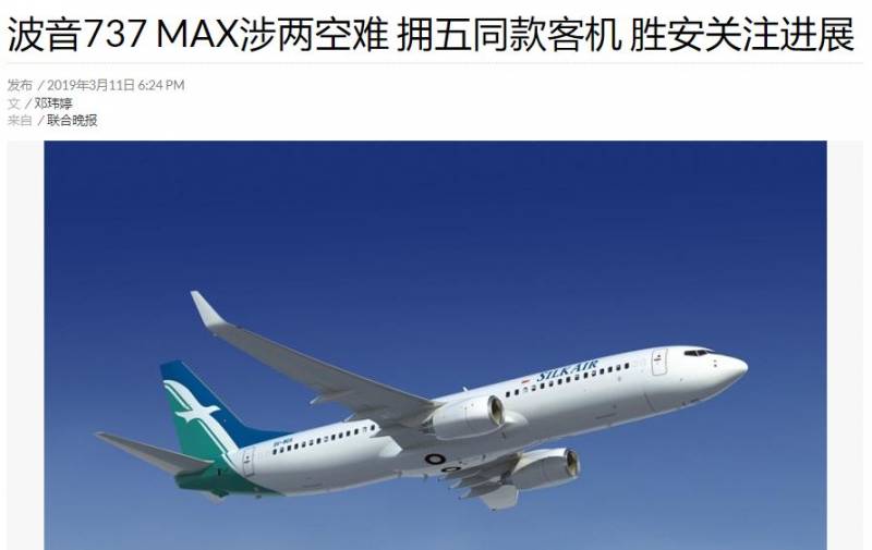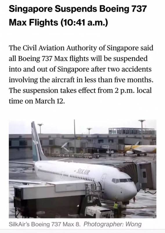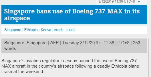 新加坡停飞波音737 Max 8