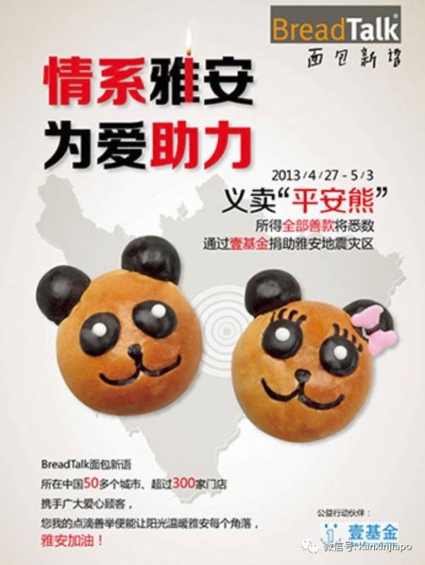 2008年汶川地震,面包物语研发了一系列“平安熊”的面包,将部分的收入作为慈善捐赠。