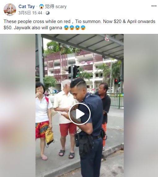 而在帖文中,Cat Tay说“这些人因为闯红灯被罚款了,现在是20元,到4月就得被罚50元了”。