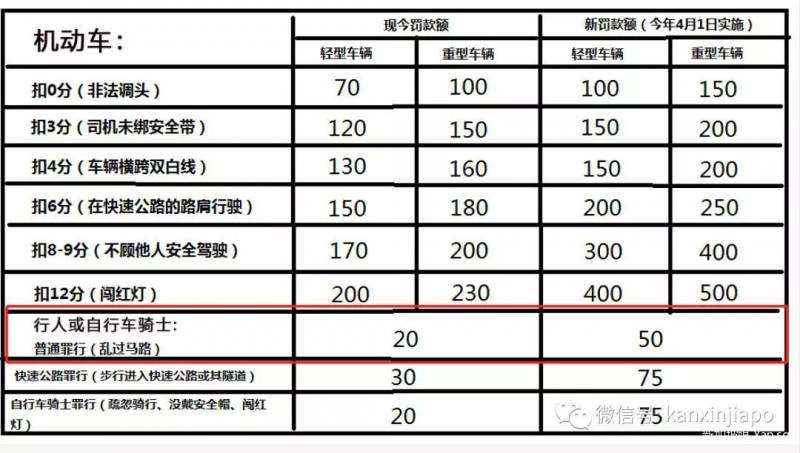 因此,新加坡内政部也将在今年4月开始,加重对于车辆或行人交通违规行为的处罚。