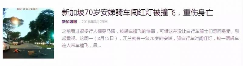 新加坡每年都有因闯红灯而导致致命车祸的人。