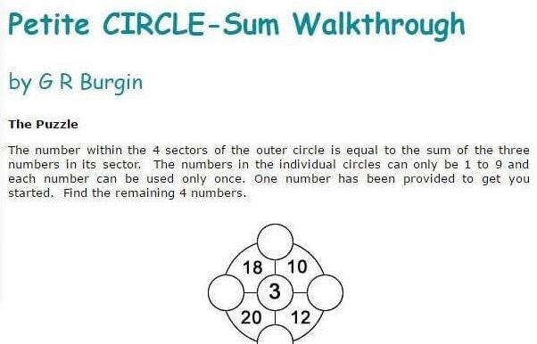 在空白的小圆内填入数字,让四分之一半圆内已有的数字,等于围绕他的三个小圆内的数字之和
