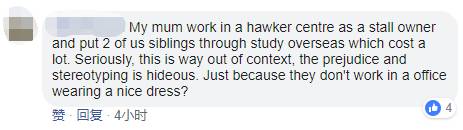 我妈妈是个小贩中心的摊主,她花了很多钱把我们两个孩子送到国外读书,说真的,这个答案完全与文章无关,这其中的偏见和刻板印象太可怕了。就因为他们没有穿漂亮的裙子在办公室工作吗?