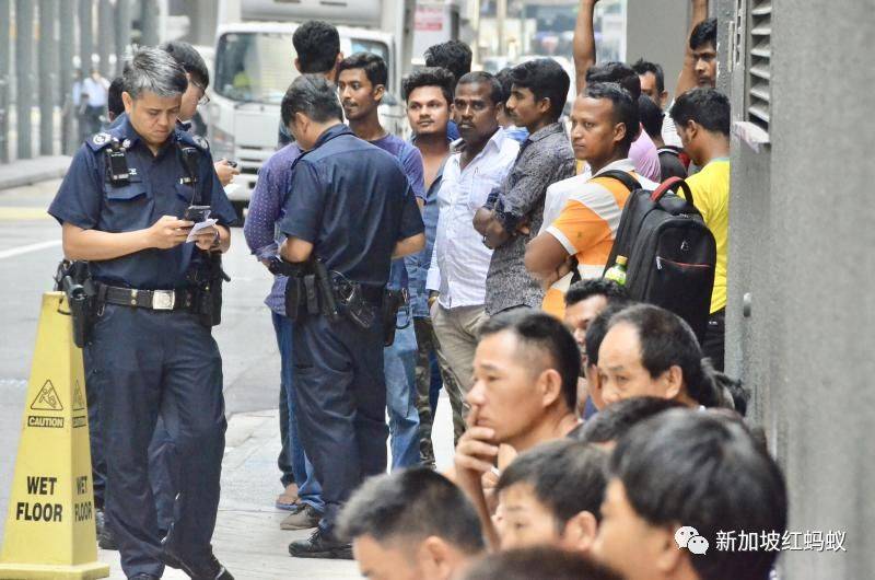 今天一大早经过新加坡中央商业区(CBD)罗敏申路的蚁粉可能有看见一大群男子在路边一字排开坐着或蹲著。