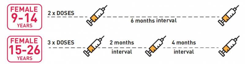 本地的主流中学,特殊需求学校、国际学校、和回族学校的中一女生可以在校内接受注射,私立学校的学生需要自己到保健促进局(HPB)指定的诊所接受注射。