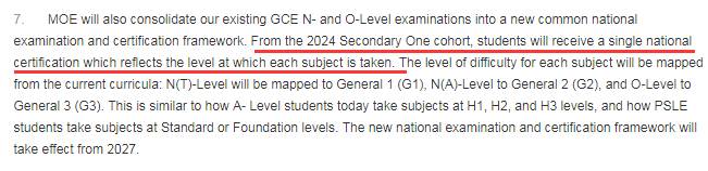 2027年起,目前的N水准和O水准会考将整合成统一的全国考试。首批受影响的将是2024年入读中一的学生。