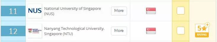 在这份排名中,新加坡的两所高校尤其引人注目。其中新加坡国立大学(NUS)在世界大学排名中跃居第11位,南洋理工大学(NTU)紧随其后,位居世界排名第12位。