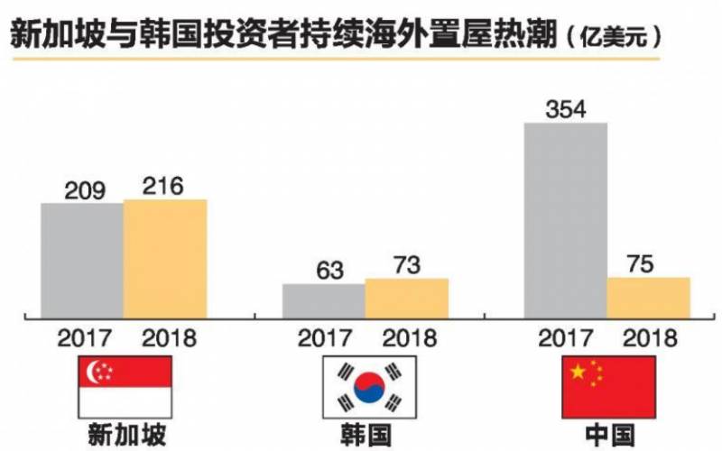除了新加坡,其他在2018年增加海外投资的亚洲投资者还来自韩国、马来西亚和印度,投资额同比分别起15.87%、132%和291%。