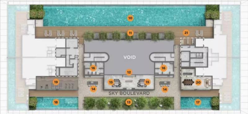 除了绝佳区位具备的繁华与便利,铂瑞雅居(Boulevard 88)还提供众多的公用空间和设施用于社交、娱乐、健身、休闲和消遣。譬如,聚会和社交活动可在天际俱乐部(Sky Club)举行;烹饪美食可在天际厨房(Sky Kitchen)进行;在天际休闲厅(Sky Lounge)可举办小型派对,把杯浅饮;在天际健身房(Sky Gym)可以享用各种健身器材;浸在天际无边泳池(Infnity Sky Pool),仰望蓝天白云或夜色星空,真是美轮美奂,无与伦比。