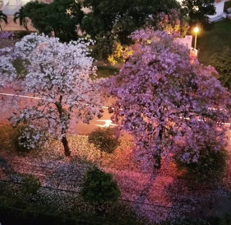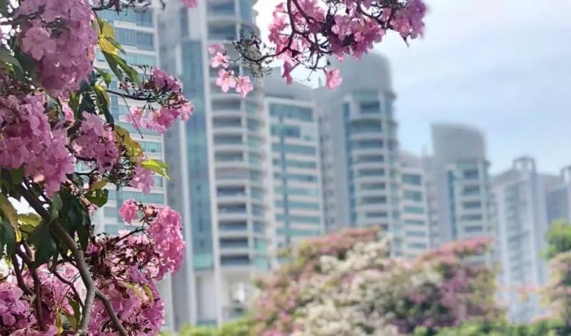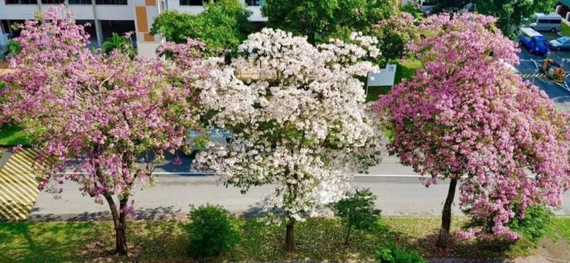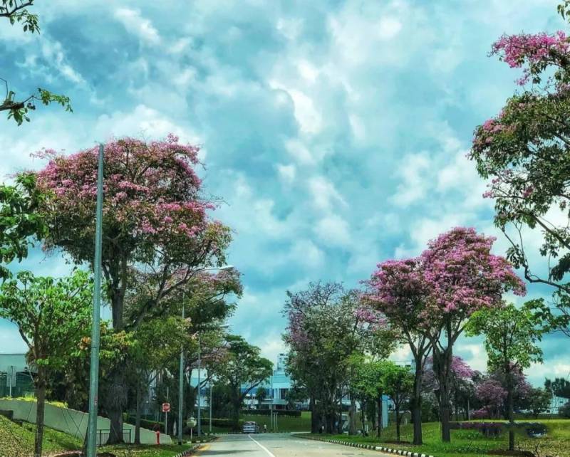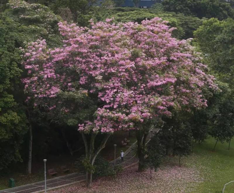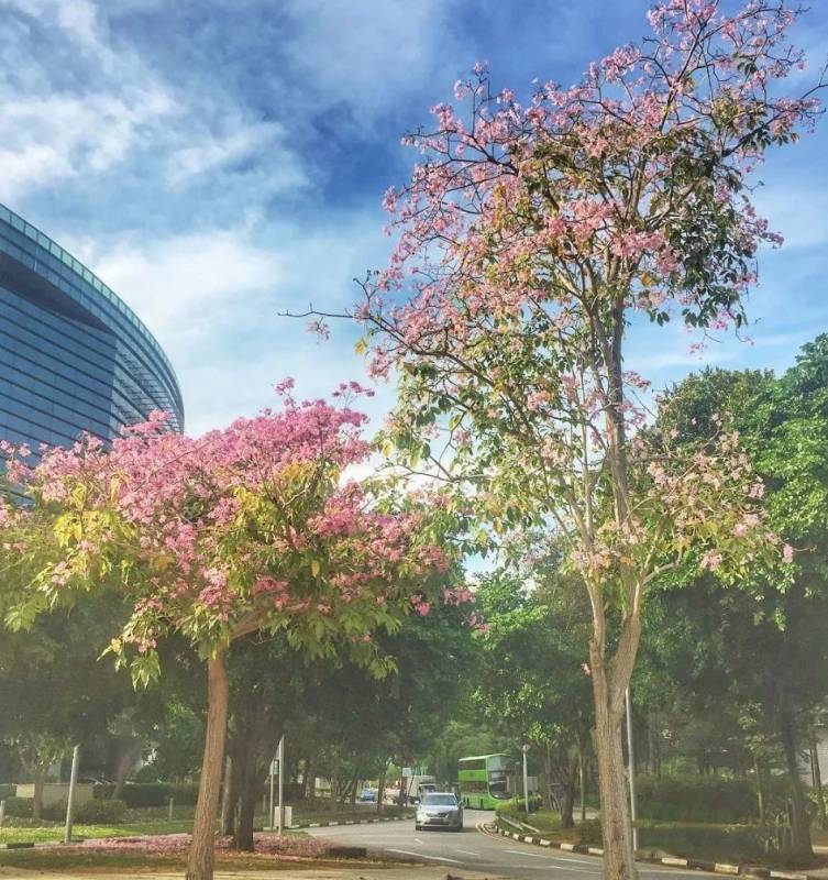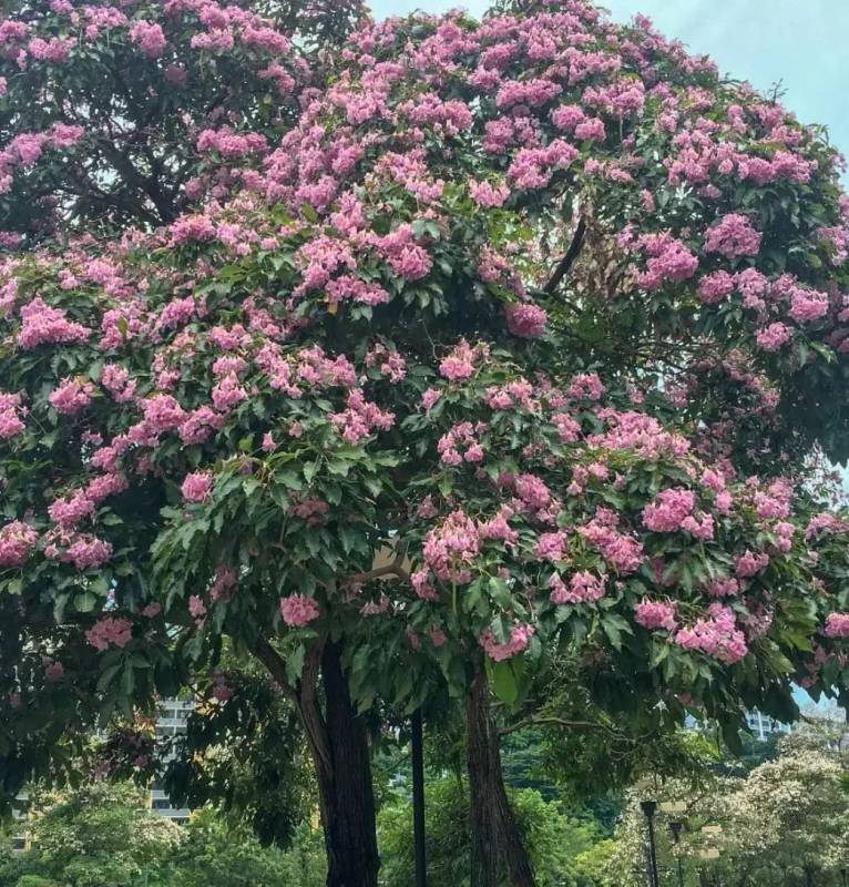 “新加坡樱花”之称的紫绣球树(Trumpet Tree,又称粉花风铃木),