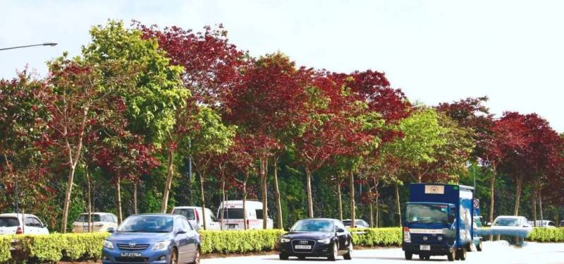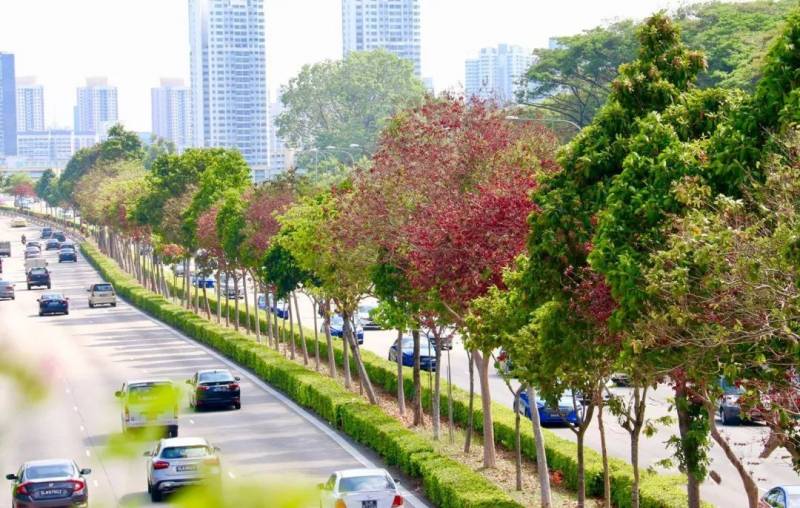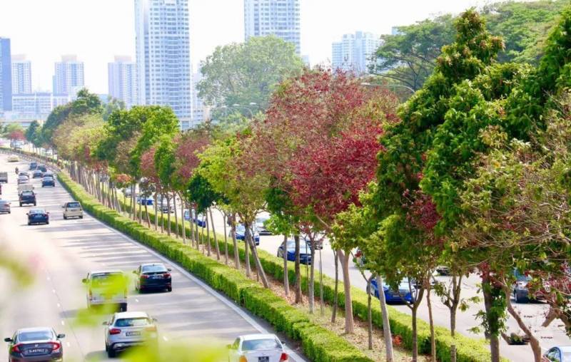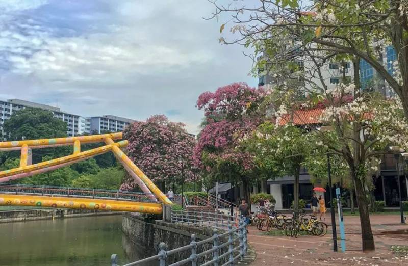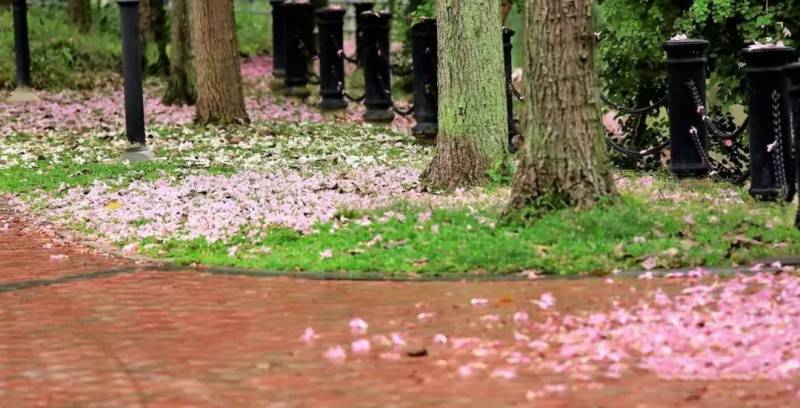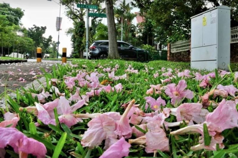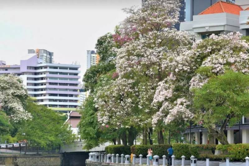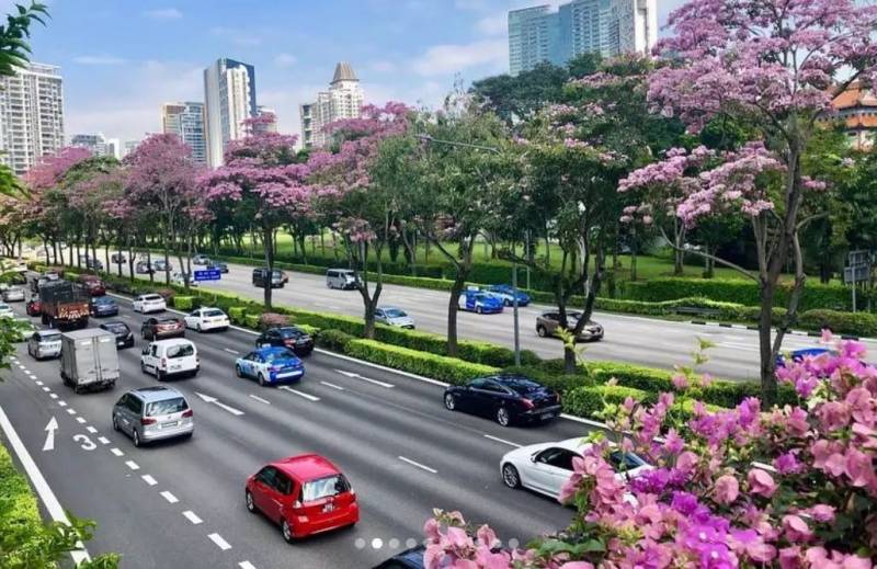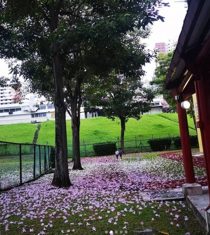 “新加坡樱花”之称的紫绣球树(Trumpet Tree,又称粉花风铃木),