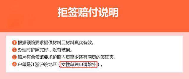 (在相关的拒签赔款说明里,也表面单独女性申请签证,拒签不赔偿)