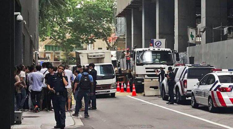 事情发生在位于罗敏申路79号的一座重建中的大厦工地外。