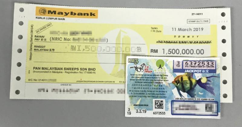 中年男子在3月3日的大彩开奖日,幸运的中二奖和积宝,赢走150万令吉。