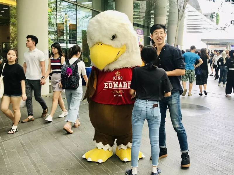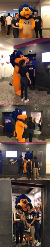 这个黄嘴白毛红衣服的大家伙可是Open Day的重量级主咖之一,它叫“MyKE”,是新加坡历史最悠久的爱德华七世宿舍(King Edward VII Hall)的吉祥物。