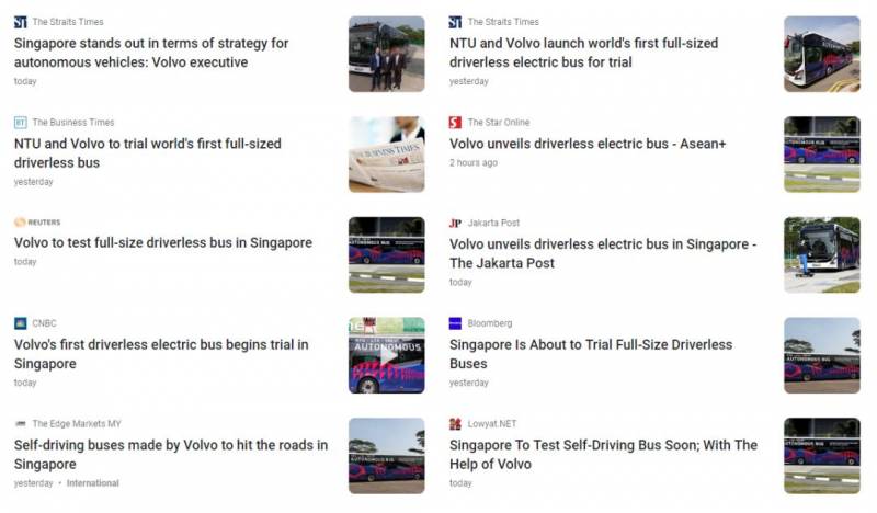 除了包括海峡时报,雅虎新闻,彭博新闻等超过30家新闻媒体报道外,社交媒体Facebook, Twitter上也是被NTU这辆无人驾驶巴士各种刷屏!