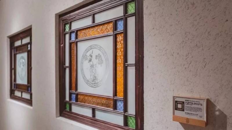 店里的上百年历史的满洲窗和土生华人瓷砖