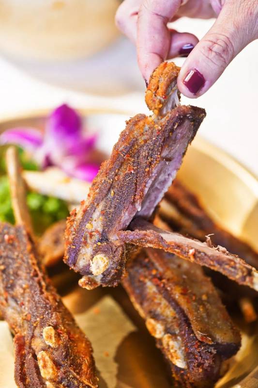 羊排烤得软嫩可口,一个人吃两根也是不在话下。