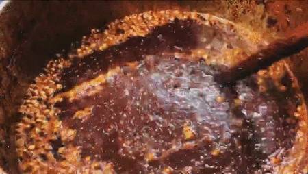 这家店的锅底,是店内师傅花上10小时以上纯手工翻炒出来的。