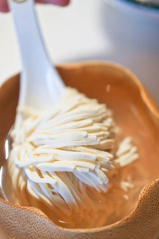 “文思豆腐”是一道有着悠久历史的名菜,非常考厨师的刀工,把豆腐切得细如发丝,但是软嫩清醇的口感,却能让你回味无穷。