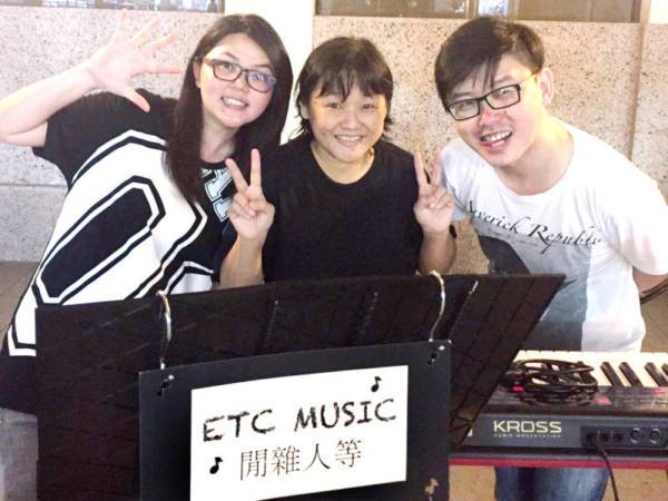唐玉璇(中)和两名好友王志文(右)和黄绣惠共组“闲杂人等”组合,近来在全岛多个地方献唱,吸引不少歌迷。(档案照)