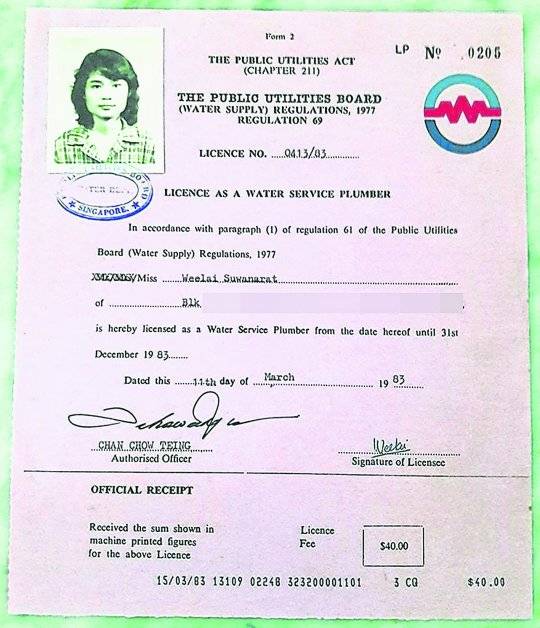 现年58岁苏娜瓦拉博士是在1983年首批获得公用事业局(PUB)认证资格的女水喉工之一。