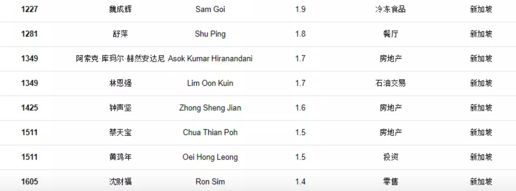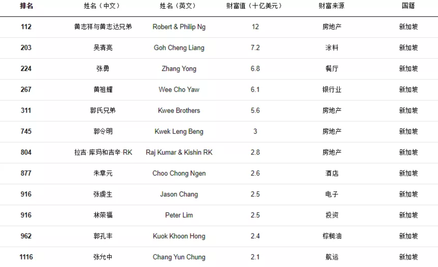 那新加坡的富豪排名如何?新加坡一共有22人入围,全球亿万富翁排行榜。