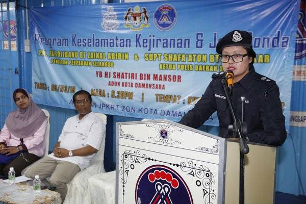 双溪毛糯警区主任莎法阿顿警监进行警民对话。出席者包括哥打白沙罗州议员沙迪里。