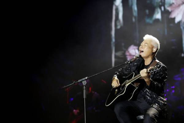 巫启贤(老巫)前晚在新加坡室内体育馆举行《爱的太傻亚洲巡回演唱会》,近3小时的演唱会中老巫演唱了约25首经典歌曲,让现场观众走进时光隧道,听得如痴如醉。