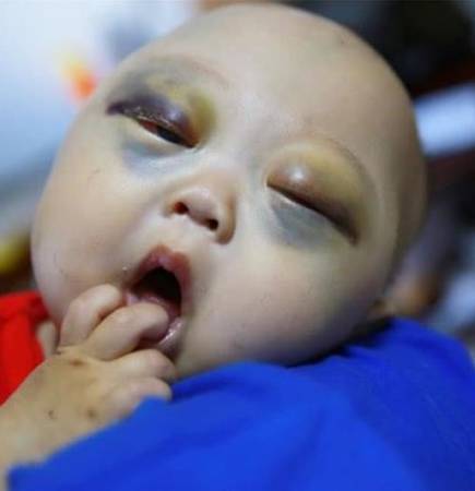 患癌女宝宝双眼肿胀淤血,眼球突出如桌球。