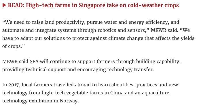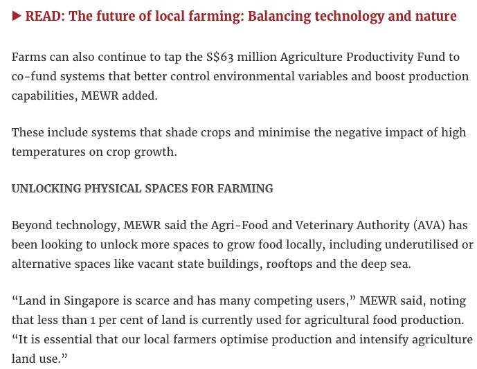 新加坡政府国会环境及水源委员会则呼吁国人支持本土农产品,并建议政府加大研发工作的投资。