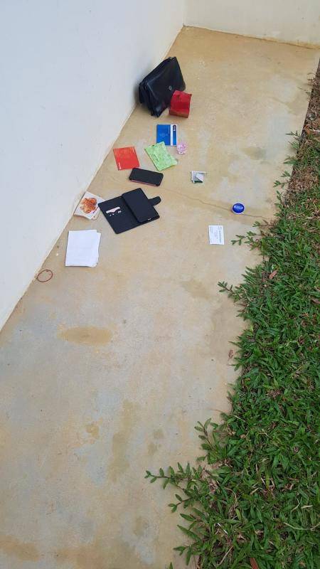 阿嬷的皮包事后在组屋楼下找到,物件撒落一地。