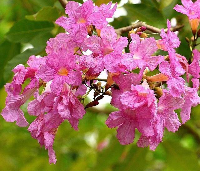 紫绣球树的花形状如同一个小喇叭,这也是这种树木英文名“Trumpet Tree”的由来。