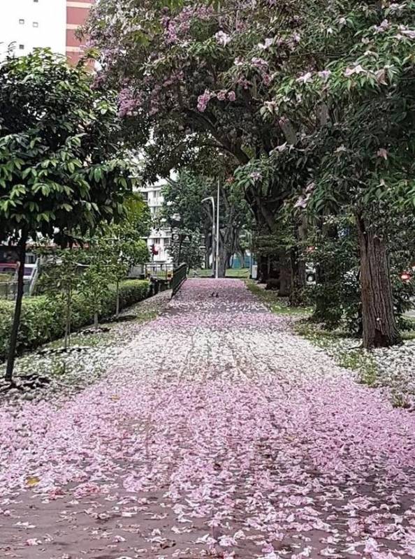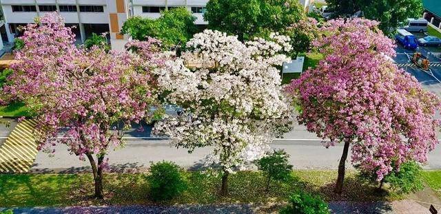 新加坡国家公园局(NParks)通过Facebook发布贴文并分享照片,在全岛多个地点,有“新加坡樱花”之称的紫绣球树(Trumpet Tree,又称粉花风铃木)花开正茂。