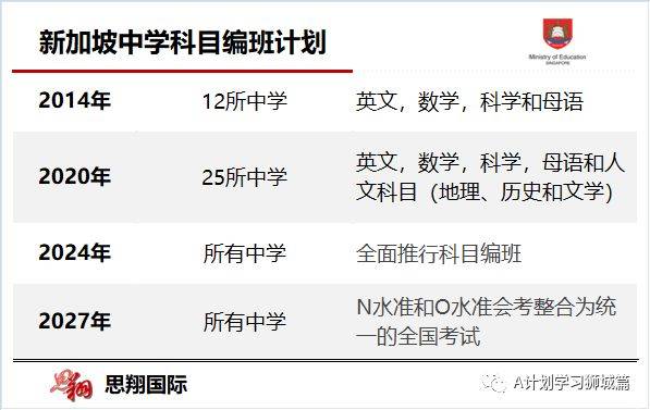 科目编班计划从2014年起在12所中学试行,取得良好成效,去年扩大到所有提供普通源流的中学,但学生目前可选的科目只限于英文、母语、数学和科学。
