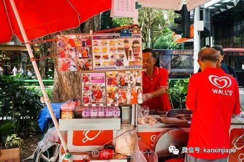 安哥们会推著一辆车,停在路边,别看这车小,其实暗藏玄机,“自带”冷柜。以前冰淇淋三明治一般是1新币一个,这两年有所涨价,涨到了1.2新币。