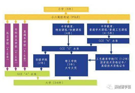 中学:在中学方面,则分为特别、快捷和普通源流。特别和快捷源流的学生一般在四年内考O水准会考,普通源流则在第四年考N水准会考,并可选择多读一年再考O水准会考。