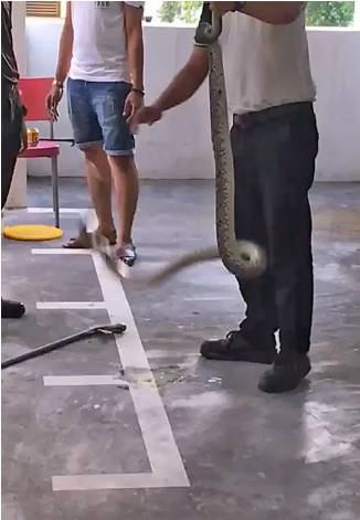 据观察,男职员多次尝试让蛇“上钩”,上载画面的网民称,灭虫公司训练时,职员轮流上场,在过程中摔蛇,全程嘻嘻闹闹,让人反感,质疑类似训练否是合理。