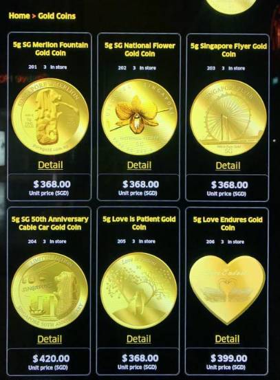 众多产品当中,金币和金片较受顾客喜爱,当中印有鱼尾狮的,更是最畅销的商品之一。