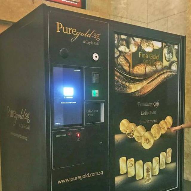 位于圣淘沙名胜世界商场内,摆放着一台黄金贩卖机,吸引许多人的目光,议论纷纷。